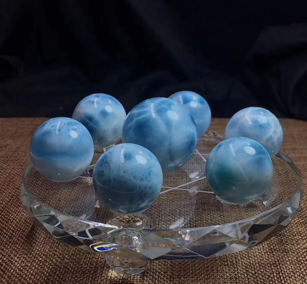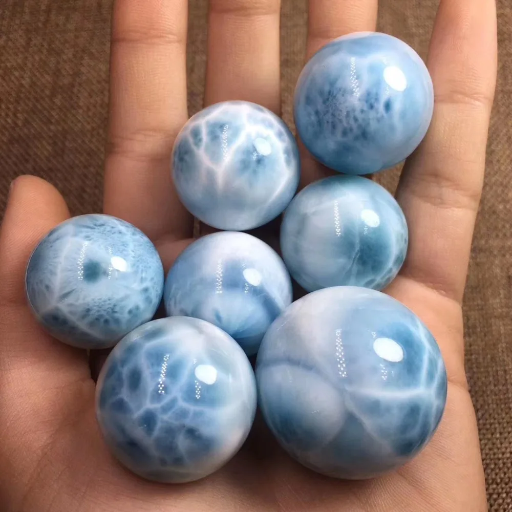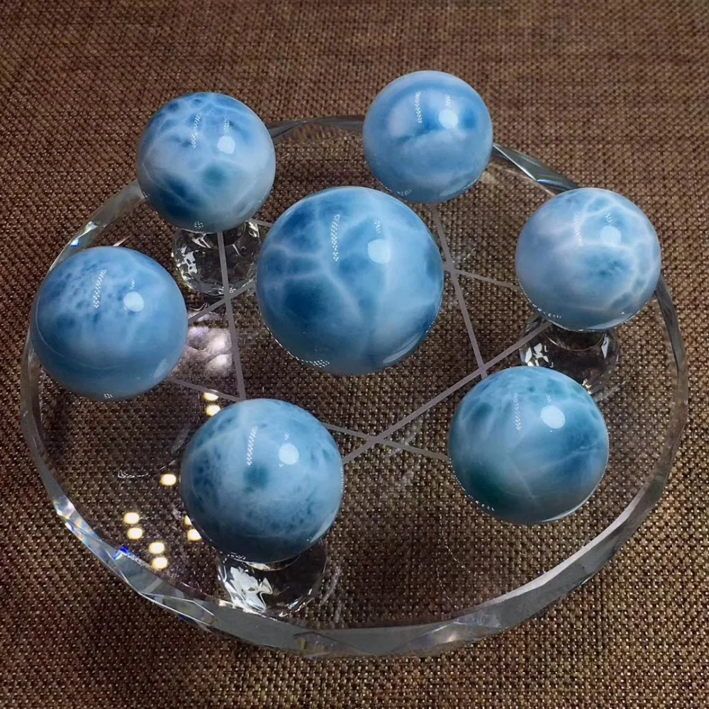 Copper Pectolite Crystal Ball Natural Larimar Chakra Quartz Healing Reiki Stone Sphere Ball + Stand