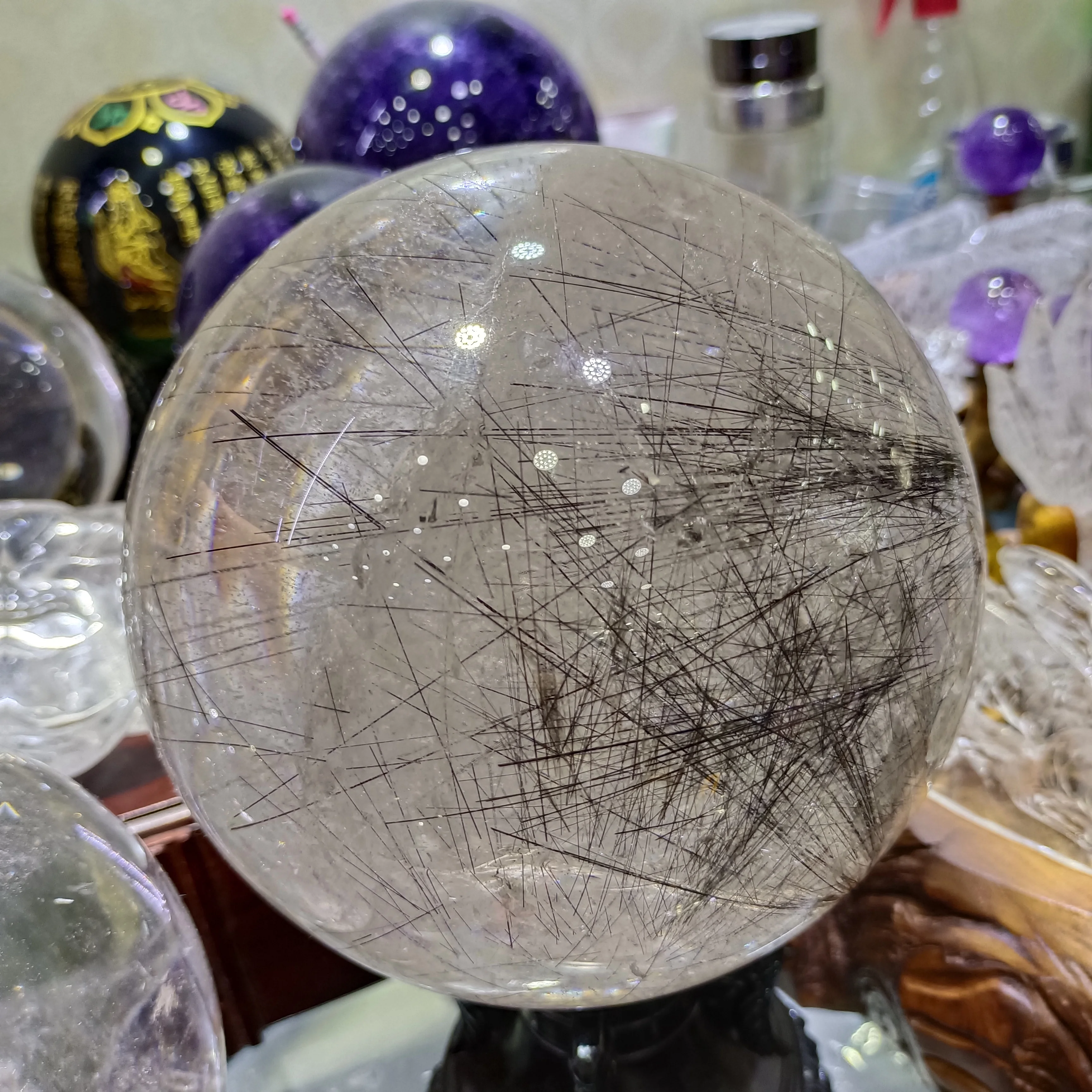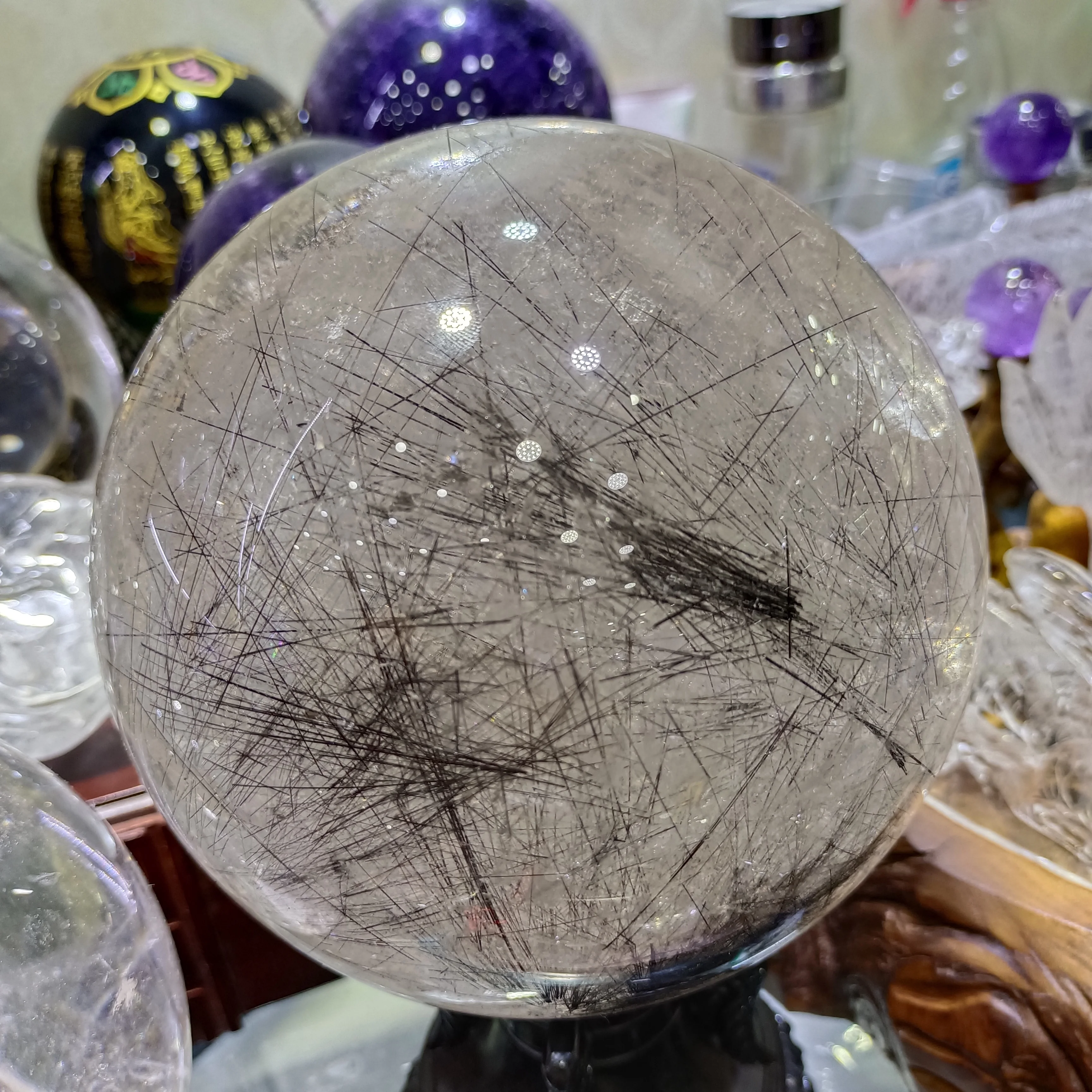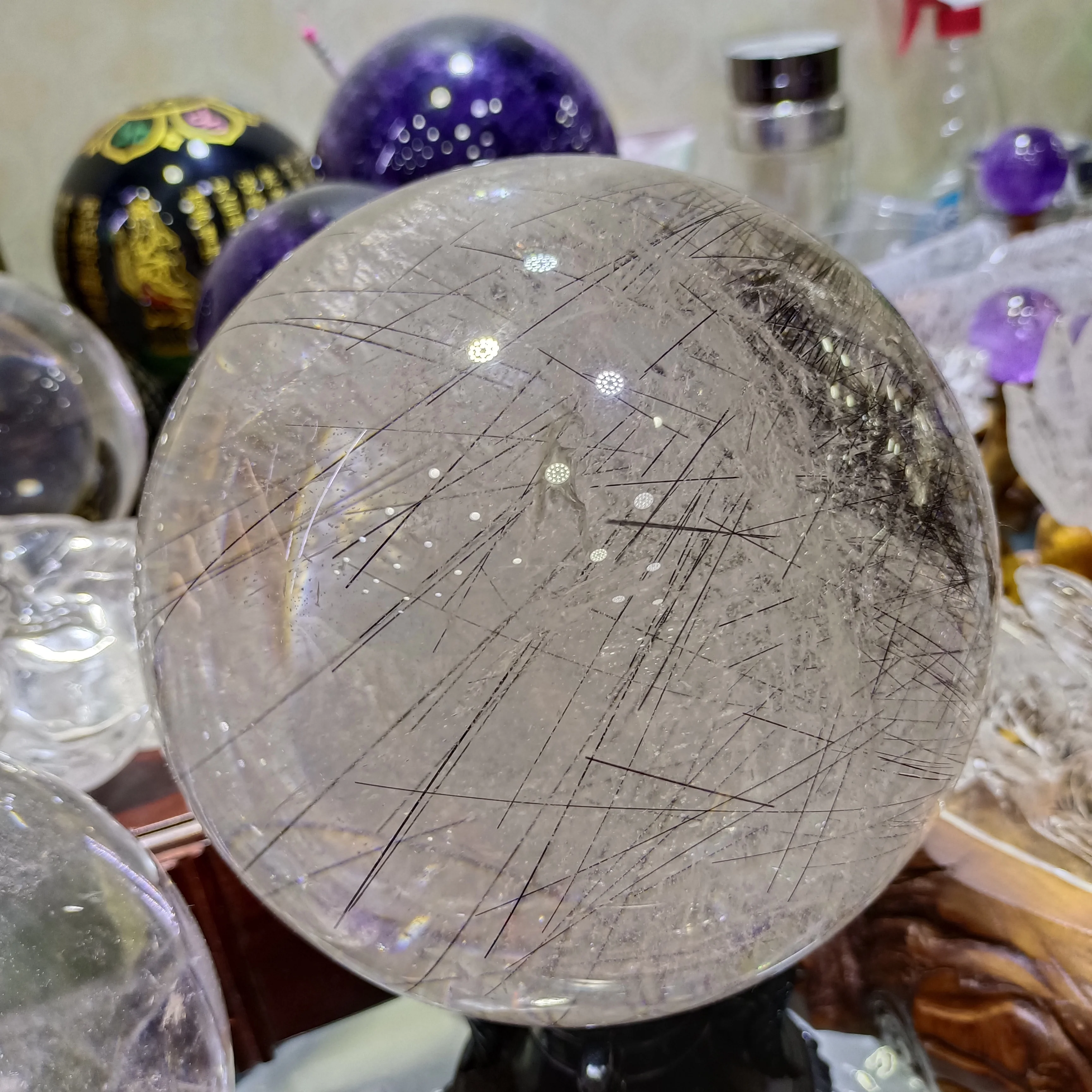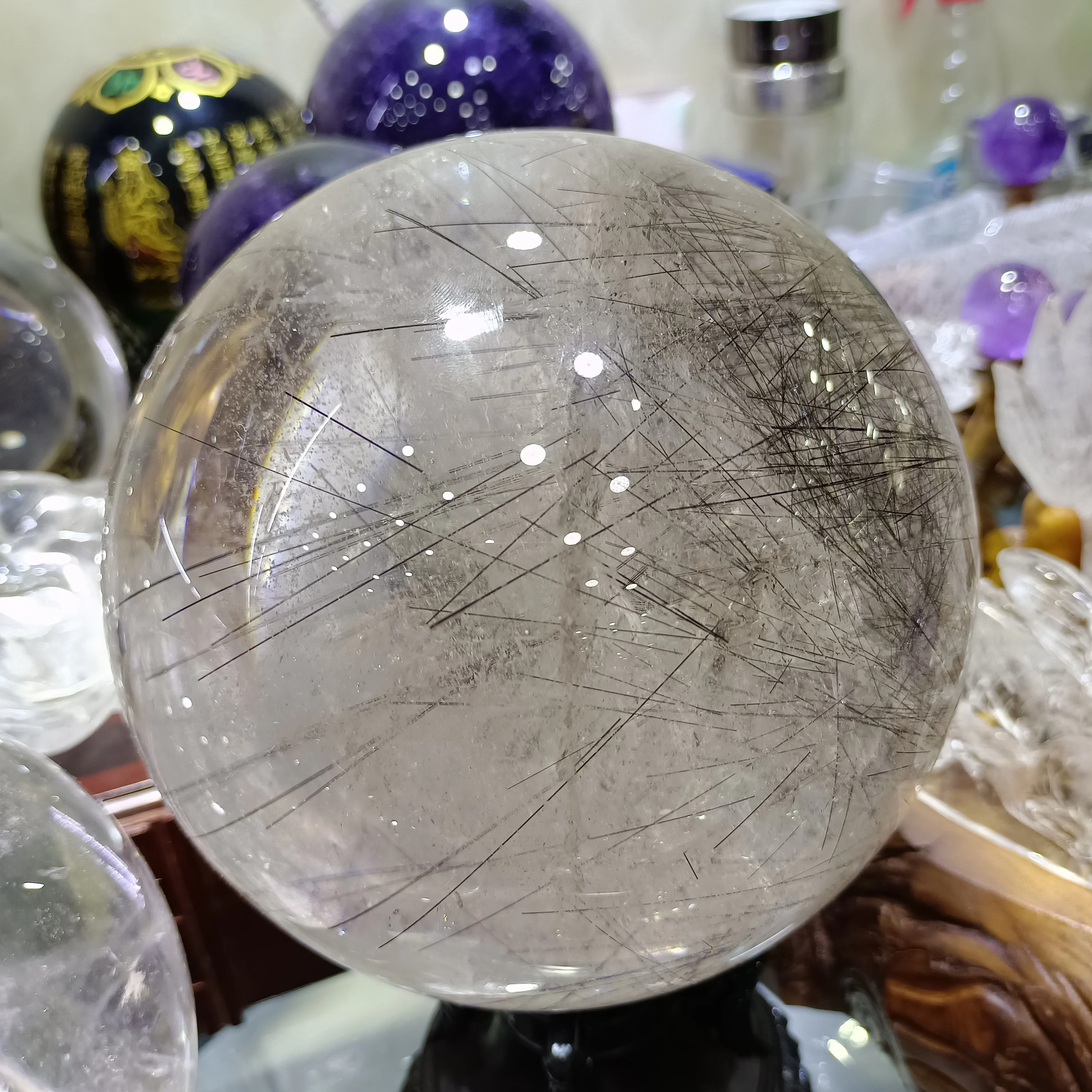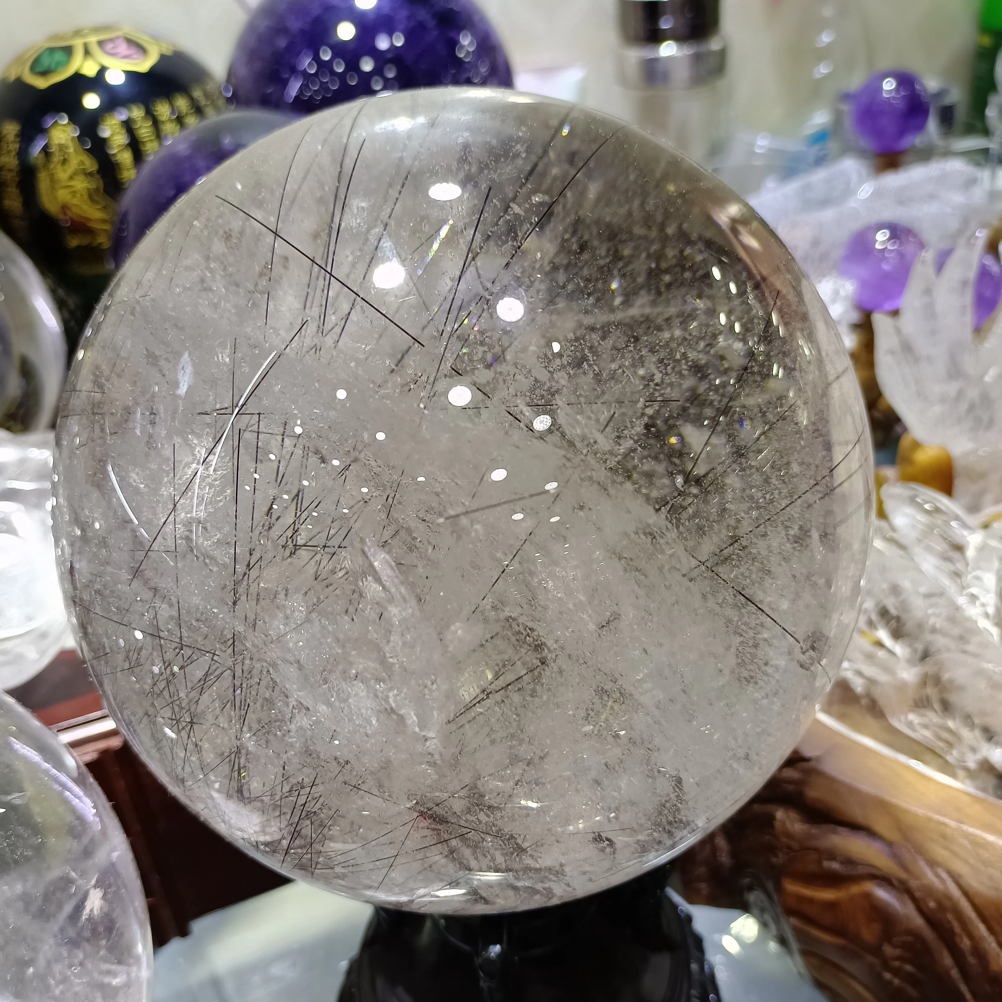 Magical Natural Hair Crystal Ball White Crystal Quartz Ball Mineral Reiki Healing Spirit Gem Home Office Degaussing Decoration