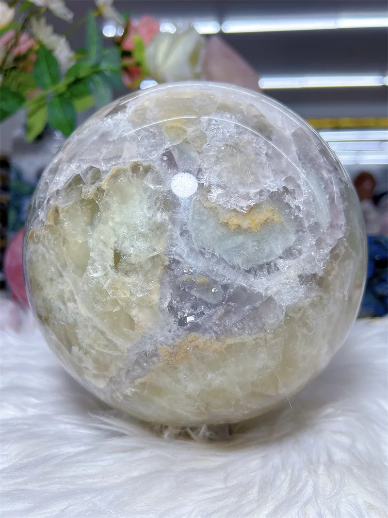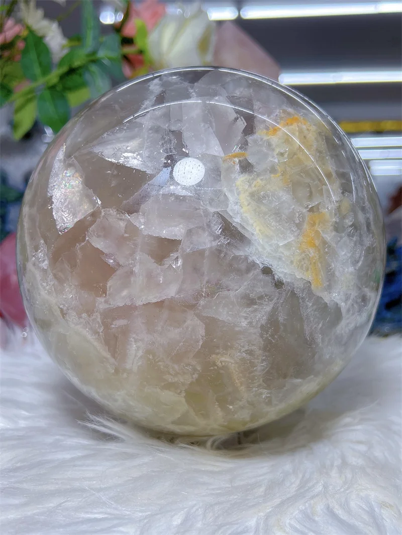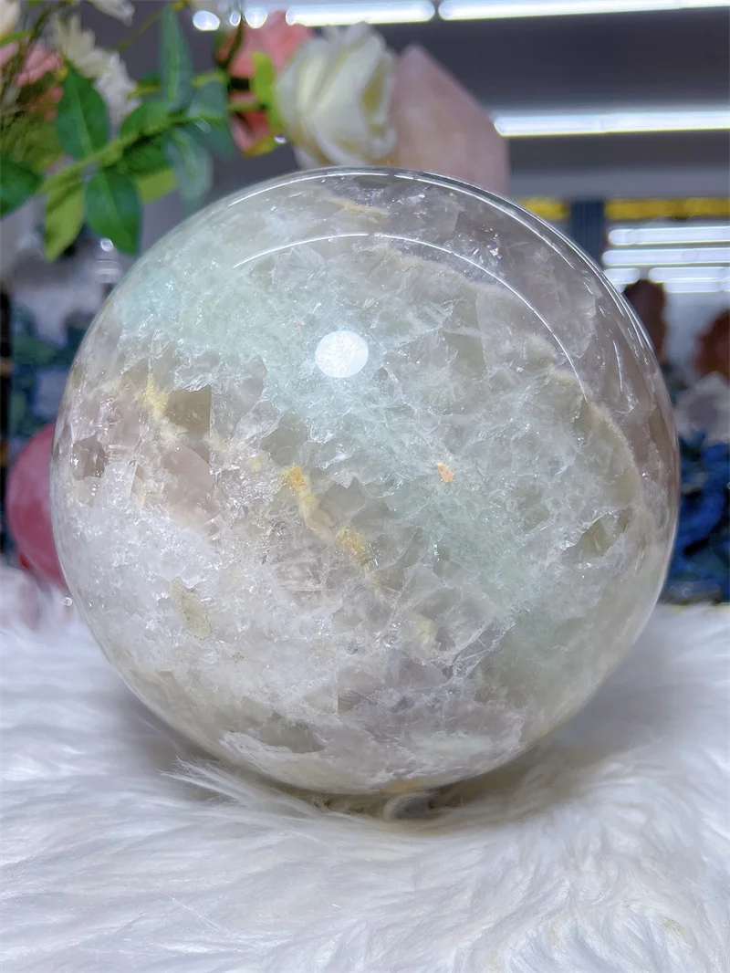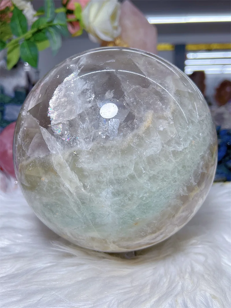 Natural Fluorite Sphere With Rain Bow Free Form Carving Reiki Healing Stone Home Decoration Exquisite Gift
